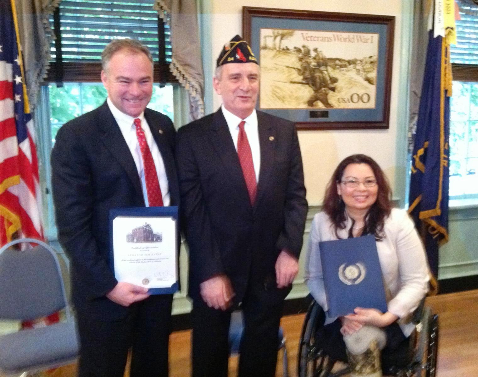 Bill Aramony, the Commander of Post 24, reminded attendees that during a roundtable at Post 24 with young veterans in 2012, Kaine promised to address the credentialing issue and return to meet with them if elected to the Senate. Aramony praised the bill and efforts by Kaine and Duckworth to create new opportunities for veterans returning to civilian occupations.